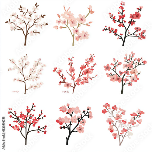 Fototapeta premium 桜, 木, 花, ブランチ, とぶ, 自然, 全盛期, サクランボ, ベクター, ピンク, 葉, sakura, デザイン, 季節, 文科系, 日本人, フローラル, 植える, イラスト, 鳥, 秋, 花, 日本, 庭, サマータイム, 模様, 美しさ, 装飾品, 咲く, 植物, 花束, 美しい, 白, 紫, デコレーション, 愛, ハート, シルエット, 壁紙, バレンタイン, 蝶