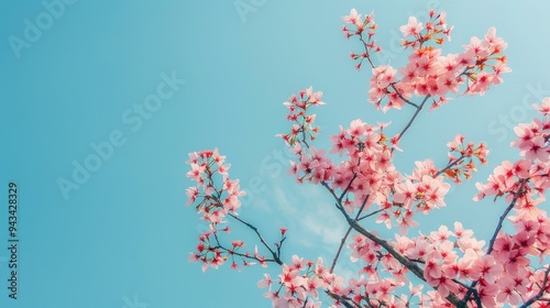 Fototapeta premium Sakura blossoms against a clear blue sky