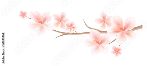 © Natasha_S, Fototapeta premium Sakura blossoms. Branch of sakura with flowers isolated on white. Cherry blossom branch. Vector