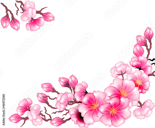 © Black Spring, Fototapeta premium Sakura branch flowers design template