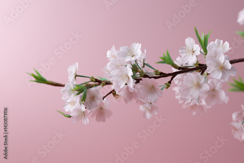 © Anastasia , Obraz premium Sakura branch on a pink background.