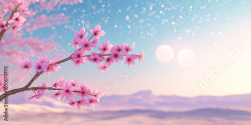 Obraz premium Sakura Branch Under Twin Suns
