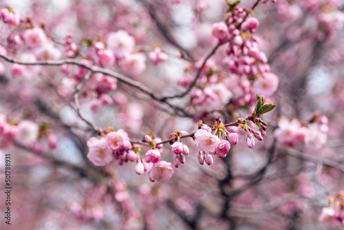 © Julija, Fototapeta premium Sakura cherry blossom branch close up