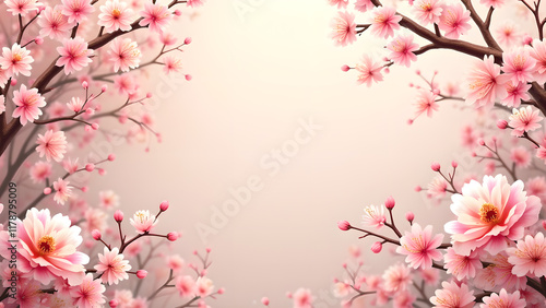 Fototapeta premium Sakura Cherry Blossom Frame. Spring Floral Background. Concept of Beauty, Nature, and Tranquility.