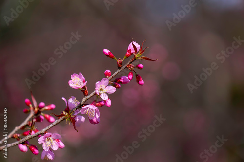 © puwa2827, Obraz premium Sakura flowers on blue background.