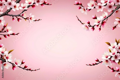 © Sanjay, Fototapeta premium Sakura on pink background with empty space and blooming cherry blossom
