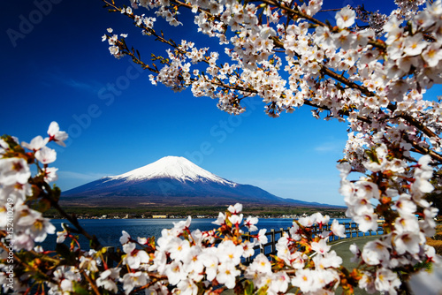 © Blanscape, Fototapeta premium sakura or cherry blossom with Mt. Fuji