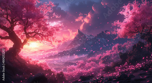 © btiger, Naklejka premium Sakura Petals Dancing in the Fantastical Night Sky