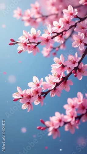 © เดือน สุขทั่วญาติ, Fototapeta premium sakura tree branches swaying in spring breeze, sakura branches, blooming cherry