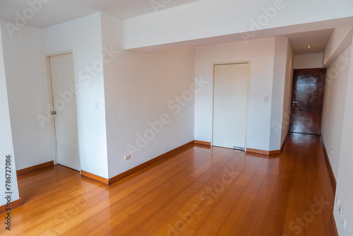 © joseayllon, Obraz premium sala de departamento con melamina y acabados en madera