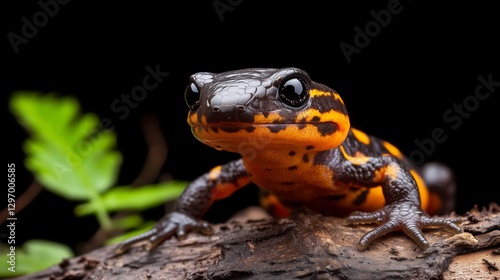 Obraz premium Salamander's Vigil: A striking close-up of a vibrant salamander, its...