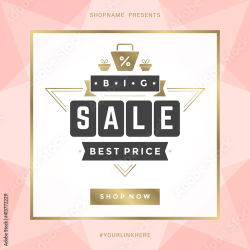 Naklejka premium Sale banner template design with gold frame and big sale message vector illustration