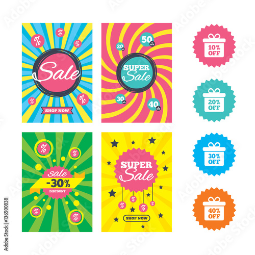© blankstock, Obraz premium Sale gift box tag icons. Discount symbols.