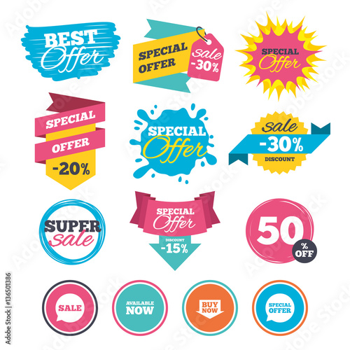 © blankstock, Fototapeta premium Sale icons. Special offer speech bubbles symbols.