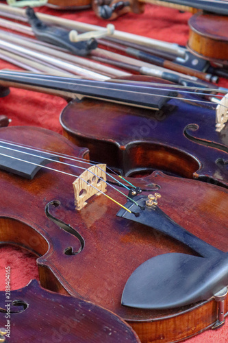 © Oleksii, Fototapeta premium Sale of violins in the city market