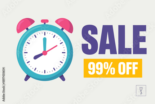 © NUSRAT, Obraz premium Sale 99 percent off discount advertisement with alarm clock on light background
