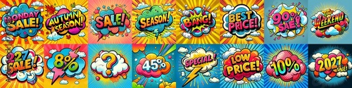 © vector_master, Obraz premium Sale stickers pop art style. AI generated illustration