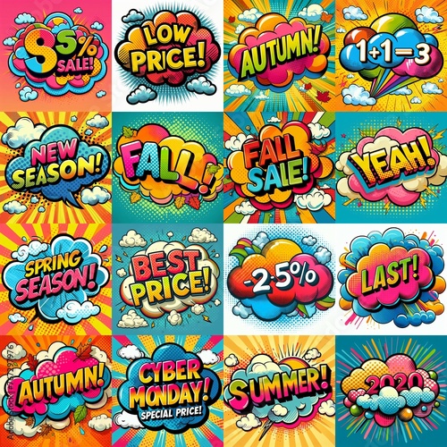 Obraz premium Sale stickers pop art style. AI generated illustration