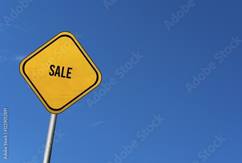 Fototapeta premium Sale, yellow sign with blue sky