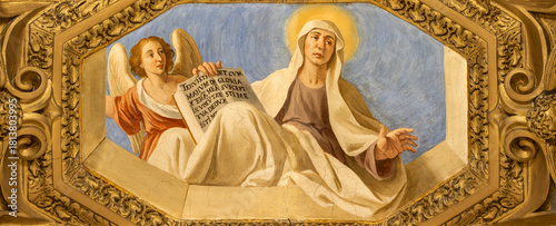 Obraz premium SALERNO, ITALY - OCTOBER 6, 2025: The baroque fresco of holy woman in the...