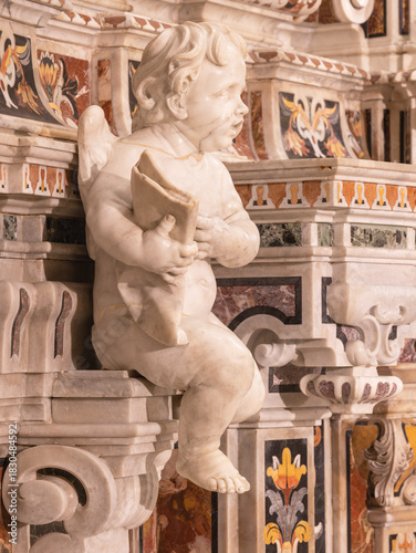 © Renáta Sedmáková, Obraz premium SALERNO, ITALY - OCTOBER 6, 2025: The detail of baroque main altar of church Chiesa di San Giorgio by Pietro and Bartolomeo Ghetti from 17. cent.