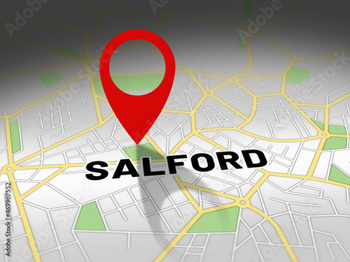 Fototapeta premium Salford on map with red GPS navigation pin. United kingdom location with...