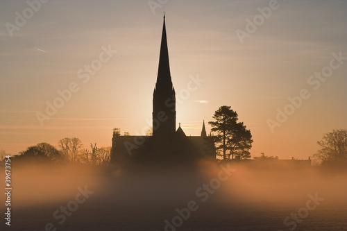© julianelliott, Obraz premium Salisbury cathedral on a misty morning