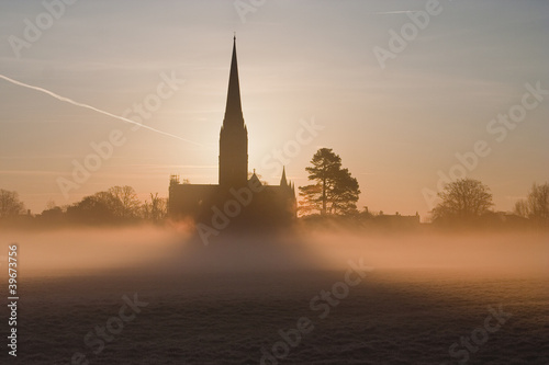 © julianelliott, Fototapeta premium Salisbury cathedral on a misty morning