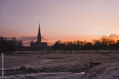© julianelliott, Obraz premium Salisbury cathedral on a winter morning