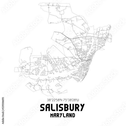 Fototapeta premium Salisbury Maryland. US street map with black and white lines.