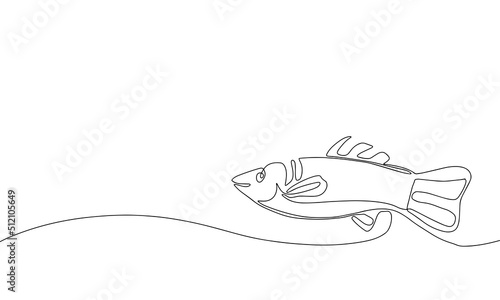 Fototapeta premium Salmon fish in the style of drawing a continuous line. Minimalist black linear sketch on a white background. Vector illustration