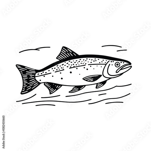 Fototapeta premium salmon fish vector design, labeled line and fill art silhouette illustration.