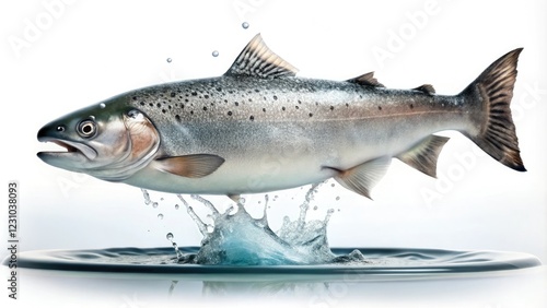 Naklejka premium Salmon swimming in a small isolated pool with a white background and visible...