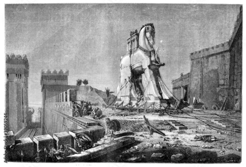 © Morphart, Obraz premium Salon of 1874, Painting. - The Trojan Horse, by Motte, vintage e