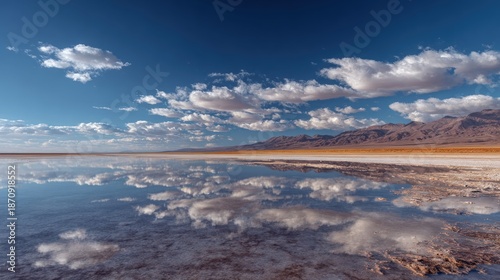 © Bagong Gareng, Obraz premium Salt flat landscape with mountain reflection