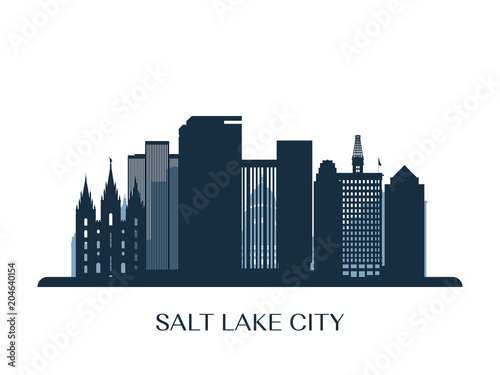 © greens87, Naklejka premium Salt lake city skyline, monochrome silhouette. Vector illustration.