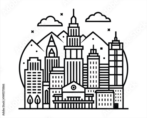 © Soron, Obraz premium Salt Lake City Skyline Vector Illustration – Black and White City Silhouette