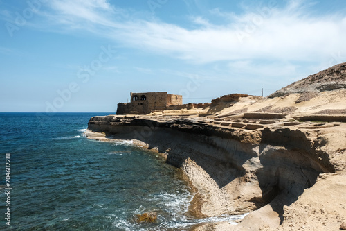 Obraz premium salt pans and abandoned building at Gozo islands, Malta