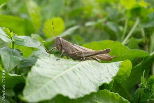 Fototapeta premium Saltamontes cafe sobre una hoja
