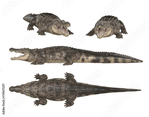 © POSMGUYS, Naklejka premium Saltwater crocodile isolated on white background or Nile crocodile. 3d illustration