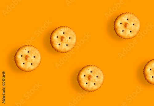 © Sandeep, Fototapeta premium salty biscuits on orange background