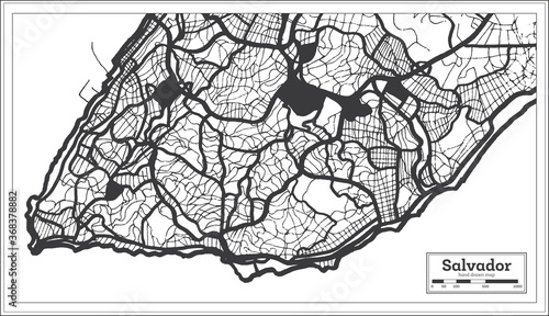 © BooblGum, Fototapeta premium Salvador Brazil City Map in Black and White Color in Retro Style.