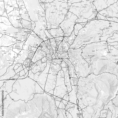 © Knut Hebstreit, Fototapeta premium Salzburg Area Map with Labels and Neighborhoods - One color, minimalistic design