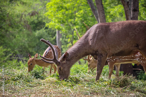 © sandeepkashyap, Obraz premium Sambar deer eat grass on the forest