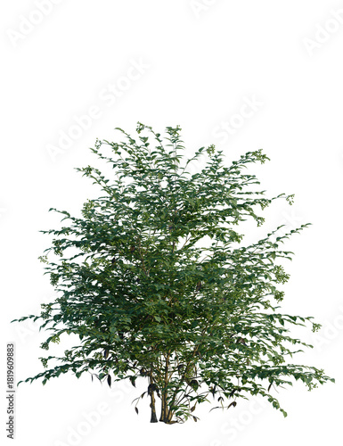Naklejka premium Sambucus nigra tree 8k, front view, cutout, transparent background, isolate, Lush green bush with small berries, ideal for garden designs and landscapes