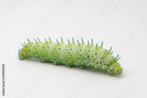Naklejka premium シンジュサンの幼虫 白背景 (Samia cynthia)
