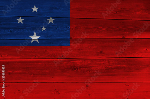 Fototapeta premium Samoa flag painted on old wood plank