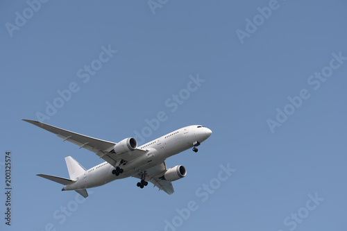 © Ichiro, Fototapeta premium Samolot lecący na niebieskim niebie