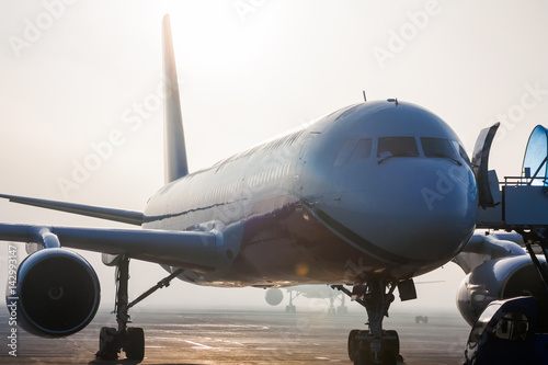 © Dushlik, Obraz premium Samoloty we mgle na płycie lotniska
