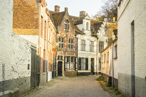 © jon_chica, Fototapeta premium samotna ulica Brugges w Belgii